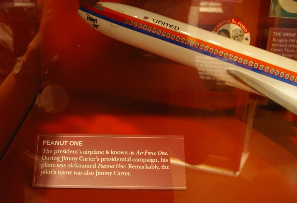 그의 지지자들은 “Peanut Brigade”라는 이름의 자원봉사대를 결성해 전국적으로 카터를 알리는 데 도움을 주었고, 선거 캠페인에서도 땅콩의 이미지를 활용했으며 기념품으로 땅콩 머그컵(Peanut Mug)을 만들었습니다. 대통령 재임 중, 대통령 전용기 에어포스 원은 때로는 “Peanut One”이라는 별칭으로 불리며 조롱의 대상이 되기도 했지만, 시골 출신 대통령이라는 점을 오히려 소박한 이미지로 바꾸어냈습니다.