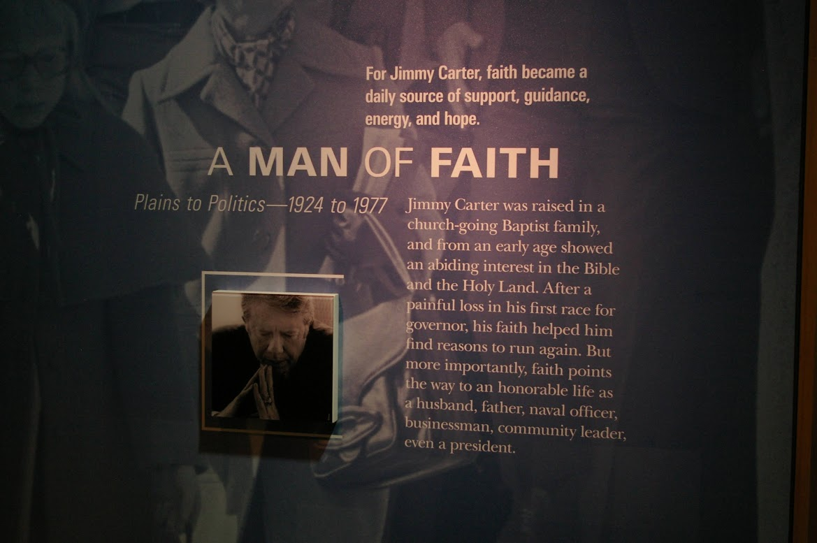 지미 카터의 삶에서 신앙은 빼놓을 수 없는 중요한 축이었습니다. 그는 어린 시절부터 미국 남침례교단 소속 교회에서 신앙생활을 이어왔고, 대선 후보시절 유세 중간에 고향 교회인 마라나타 침례교회(Maranatha Baptist Church)에 돌아가 주일학교 선생을 한 것으로 유명했으며, 대통령 재임 중에도 틈나는 대로 워싱턴 DC의 제일침례교회(First Baptist Church)와 고향교회 주일학교 선생으로서의 역할을 놓지 않았던 것으로 유명합니다. 물론 퇴임후에는 다시 고향 교회에 돌아가 50여 년간 주일학교를 가르치며 지역 사회에 봉사했습니다. (참고로 아이들 대상이 아니라 성인 대상 성경공부 교사였다고 합니다.)