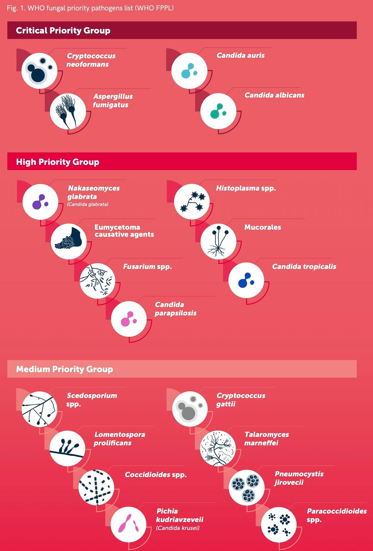 최근 곰팡이 감염에 대한 세계적 관심이 증가하면서 세계보건기구(WHO)에서 처음으로 fungal priority pathogens list를 발표했습니다. 아마 이 분야에 관심이 있으시다면 대부분은 익숙한 균들일텐데요.