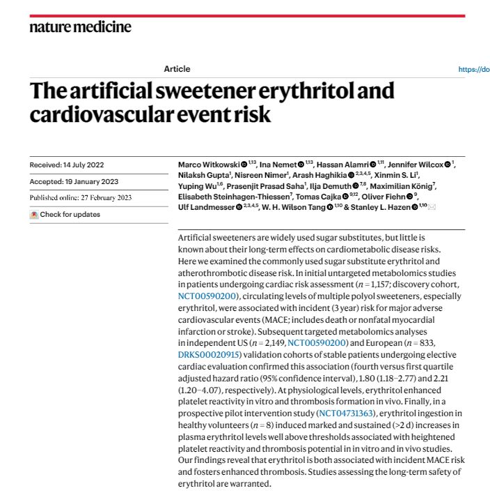 5. 에리스리톨이 심혈관계 질환 위험의 원인이라는 논문인가? No!