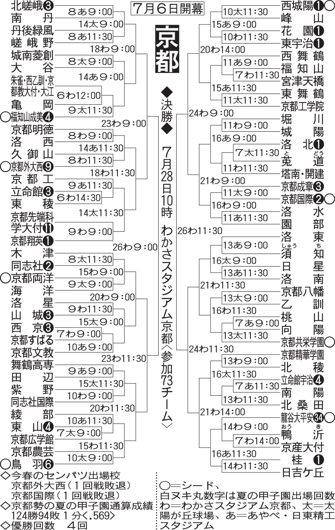 하지만 저 토너먼트의 한자리를 차지하기 위해서는 치열한 지역예선을 통과해야 하죠. 올해 교토지역예선에서는 73개의 팀이 맞붙었고, 교토국제고는 거기서 1위를 한 것입니다.