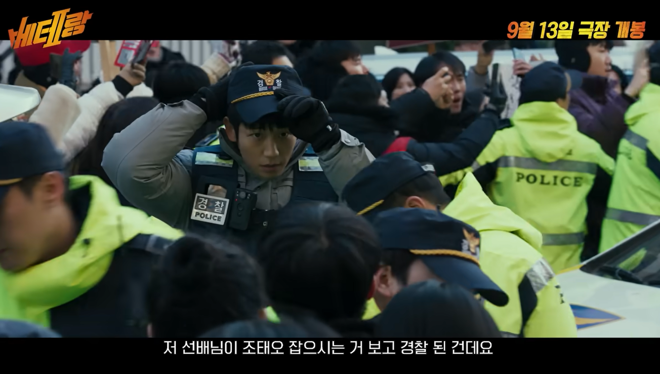 대중에 대한 시선도 좀 바뀌었습니다. 1편에서 대중들은 사건과는 떨어져 있어도 열심히 카메라로 범죄현장을 찍는 목격자의 역할을 합니다. 하지만 2편에서는 모두가 주체인 척 의견을 내고 소통하는 것 같지만 돈벌이 목적의 유튜버들 카메라에 휘둘리는 객체가 되어버렸습니다. 실은 그들이 깔아놓은 판에서 놀고 있는 것이죠. 어쩌면 일부(?) 관람객들의 <베테랑2>에 대한 불편함은 여기서 비롯되는지도 모르겠습니다.