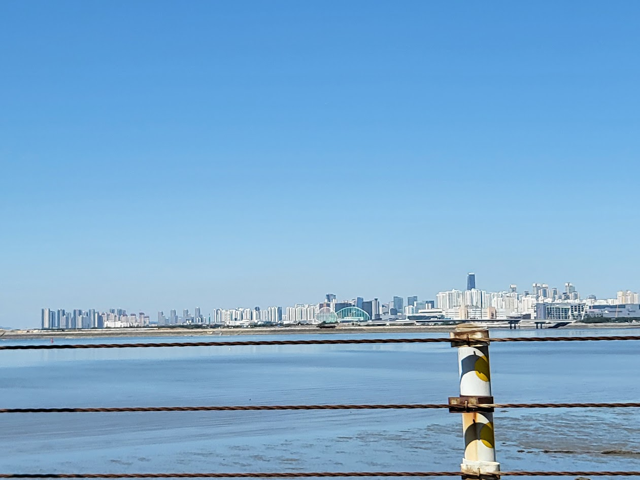 대부도에서 바라보면 인천 송도가 건너편에 보입니다. 마음 같아서는 걸어갈 수도 있을 것 같은데, 차로는 삥 돌아와야 하죠.
