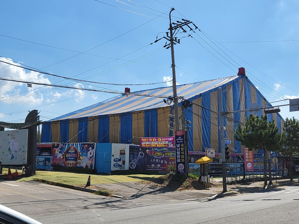 대부도 가는 길에 동춘서커스단이 공연하는 곳을 지나갔습니다.
