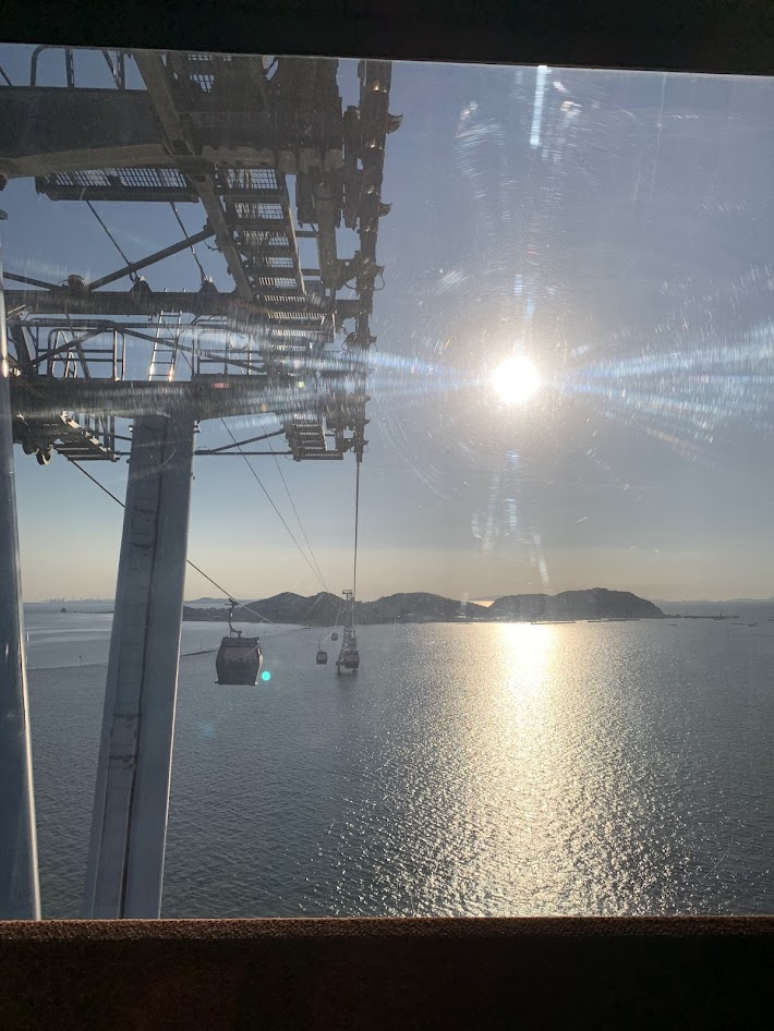케이블카를 탔습니다. 일몰시각 15분 전에 탔는데, 해가 바다로 내려가는 것을 보시려면 5분 전에 타는 것을 추천합니다. 왜냐하면 케이블카 타고 가는 시간이 대략 10분이 안되더라구요.ㅎㅎ