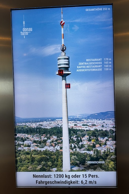 타워에 도착하니 입장료는 18유로. 조금 비싸지 않나 싶었지만 비엔나의 물가는 원화로 환산하면 안되기에 표를 끊고 올라갔는데, 올라가니까 돈주고 올라오길 잘했다는 생각이 들더군요. 도나우 타워의 야외 전망대 높이는 150m이고 카페는 170m에 위치해 있는데 카페는 천천히 회전하기 때문에 어디 앉아도 창가에만 앉으면 사방을 다 구경할 수 있습니다.
