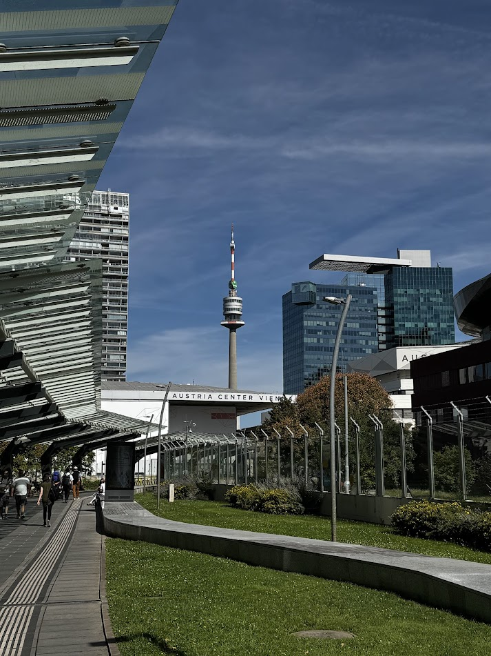 비엔나에서 국제 행사를 가장 많이 하는 장소가 오스트리아 센터(Austria Center Vienna, ACV)입니다. 저희 학회도 여기서 열렸구요. 도나우 강변 ( Donaustadt)에 있는 대규모 컨벤션 센터이고 넓은 전시장이 있으며 바로 옆에 UN 본부가 있는데 비엔나 시내는 고색창연한 과거의 건물들과 역사가 숨쉬는데 비해 이 동네는 완전 현대식 비엔나를 볼 수 있는 곳입니다. 가는 길도 편해서 지하철 U1 라인으로 Kaisermühlen-VIC역에서 내리면 되고 시내에서 15-20분 정도 걸립니다.